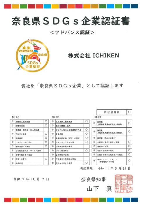 HOME > お知らせ > 奈良県SDGs企業認定を取得しました